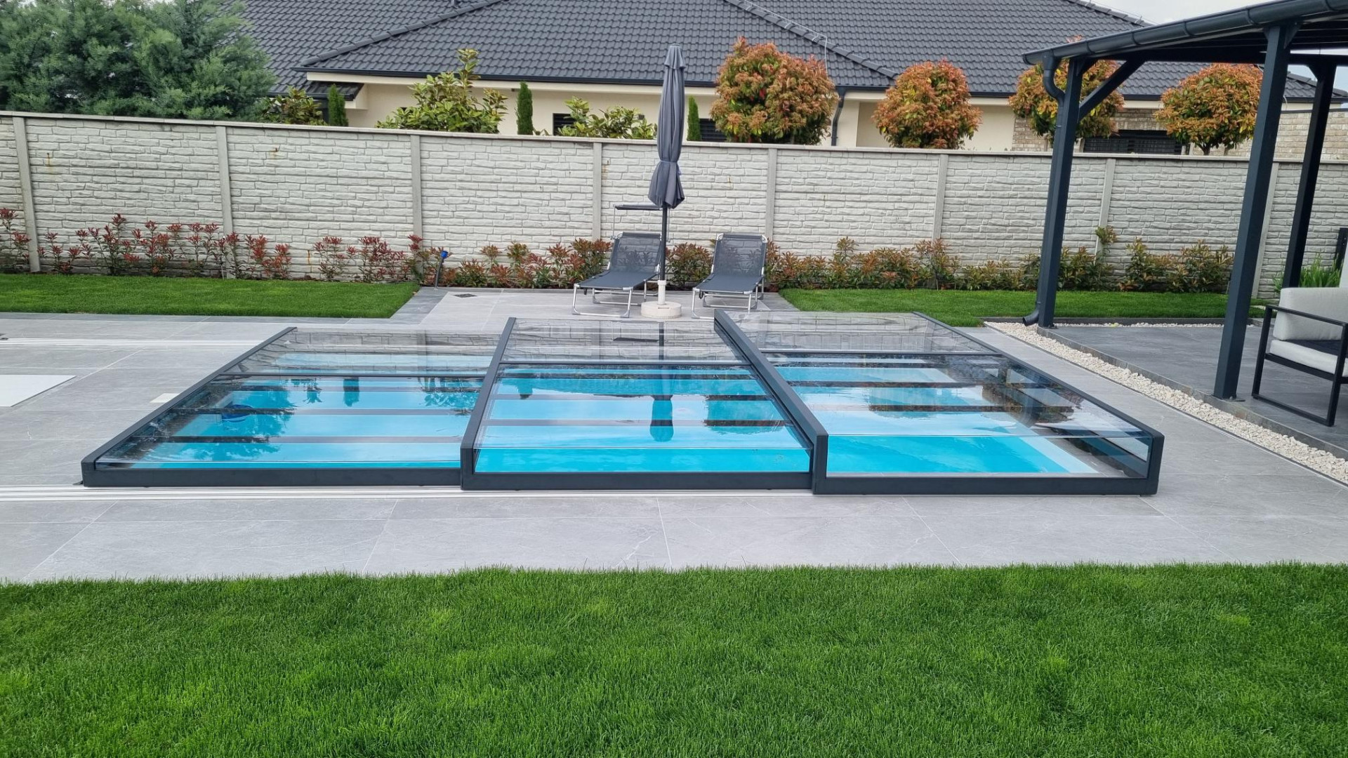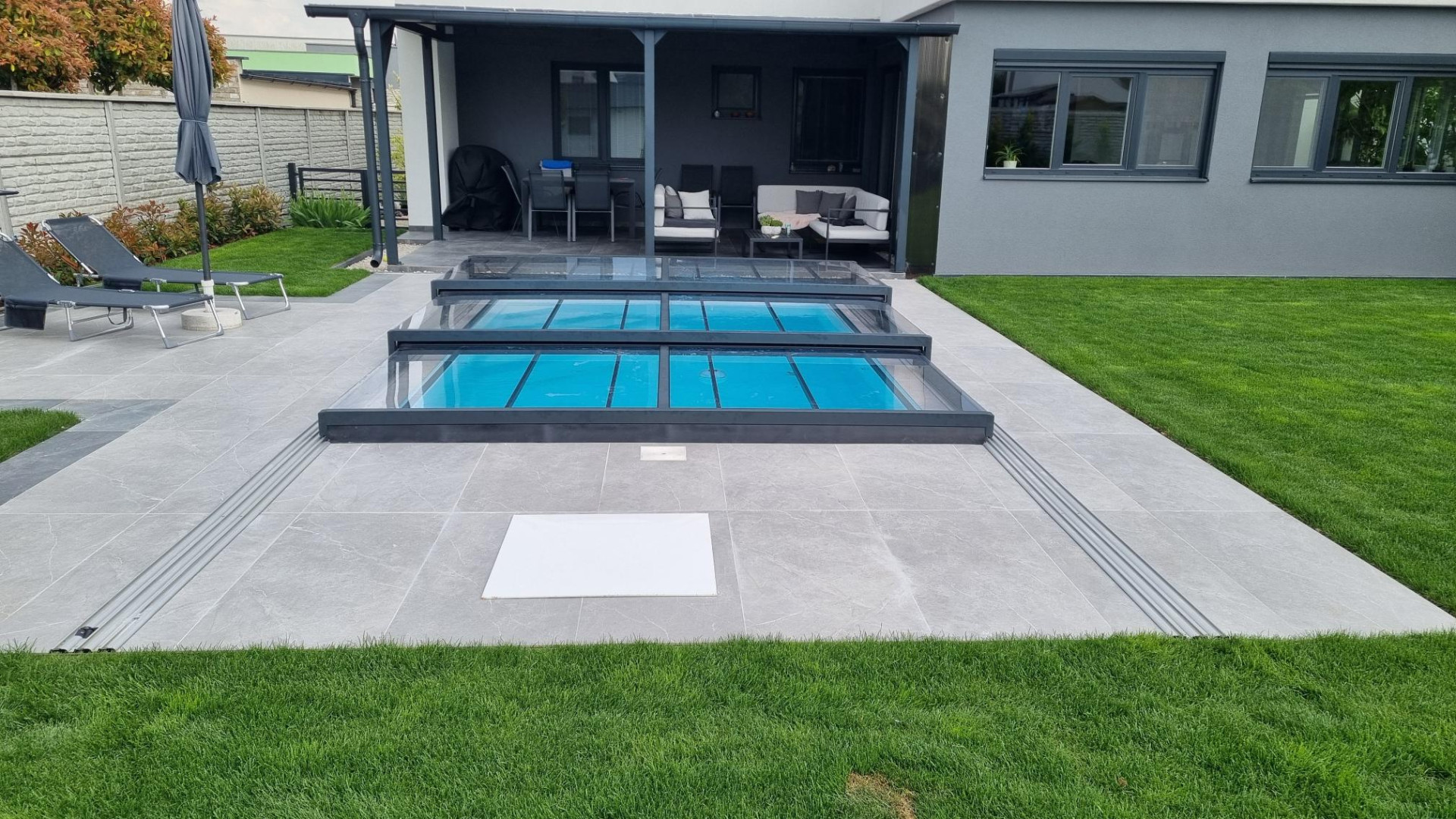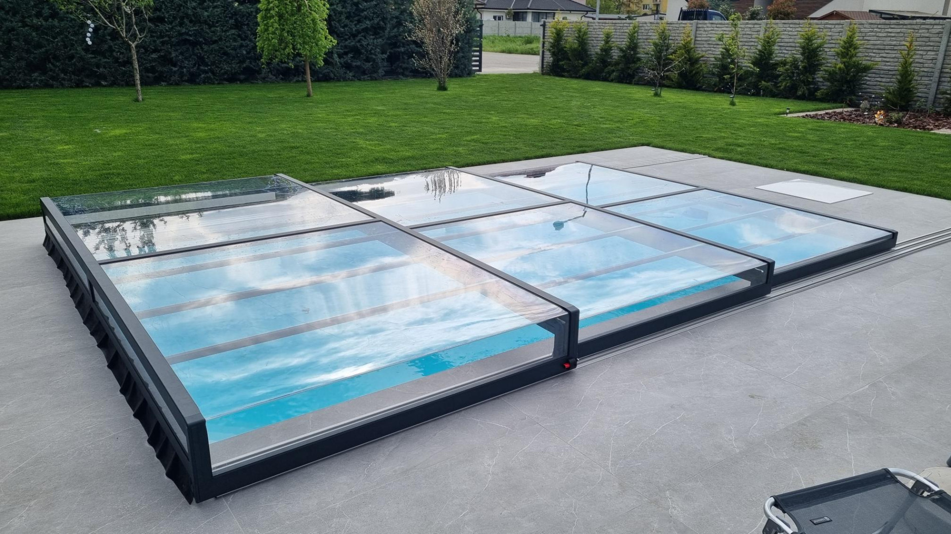 Cette fois-ci, nous avons livré à notre client un abri de piscine modèle EXCLUSIVE – une solution élégante qui protège l'eau, prolonge la saison de baignade et s'intègre parfaitement dans un jardin moderne.