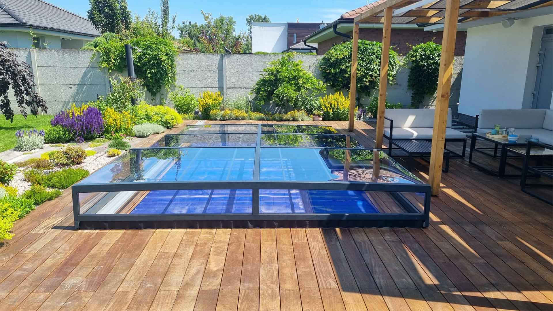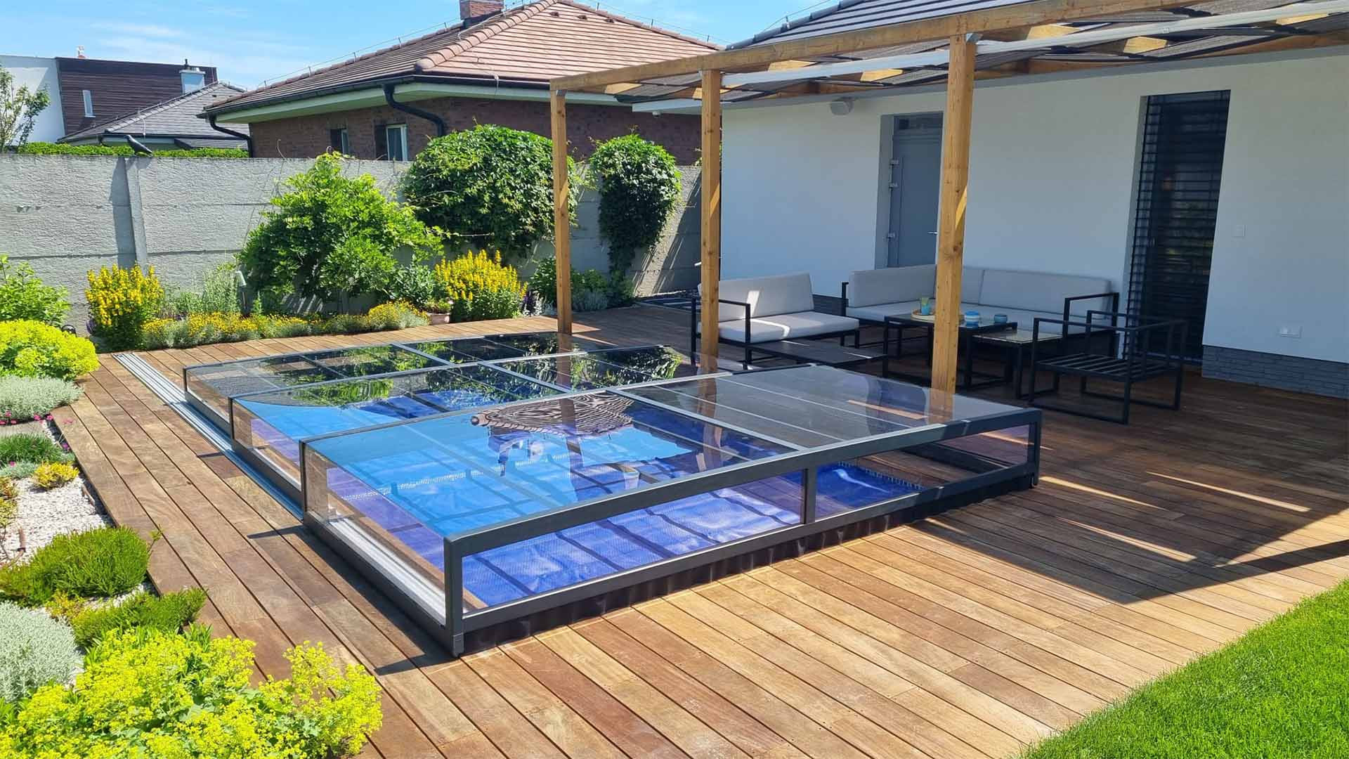 L'abri de piscine EXCLUSIVE allie design et fonctionnalité. Grâce à son profil bas, il reste élégant et ne gâche pas la vue sur le jardin tout en remplissant toutes ses fonctions pratiques : il prolonge la saison, maintient l'eau propre durablement et renforce la sécurité autour du bassin. Le client apprécie également la manipulation facile et les exigences minimales d'entretien.