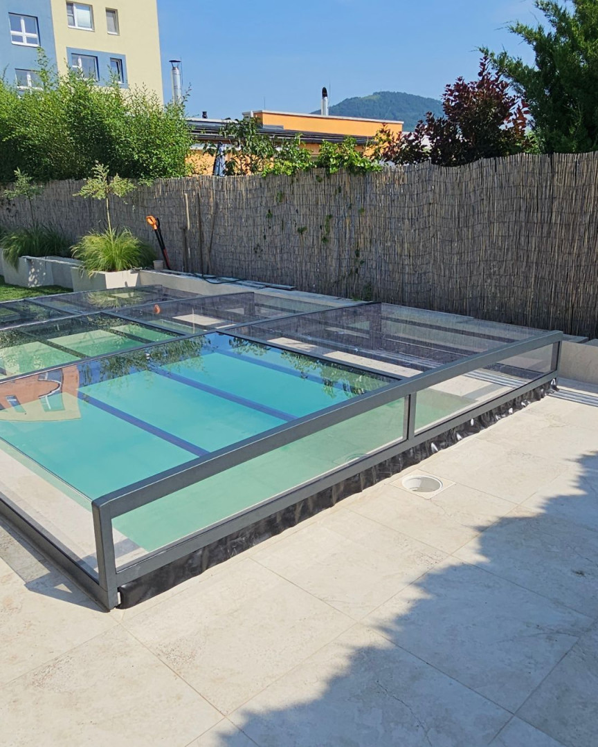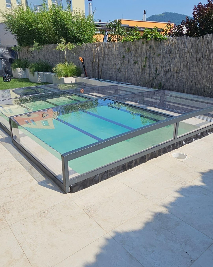 L'abri de piscine EXCLUSIVE est la solution idéale pour ceux qui recherchent la fonctionnalité enveloppée dans un design épuré. Son profil discret s'intègre parfaitement à chaque jardin – sans aucun compromis.