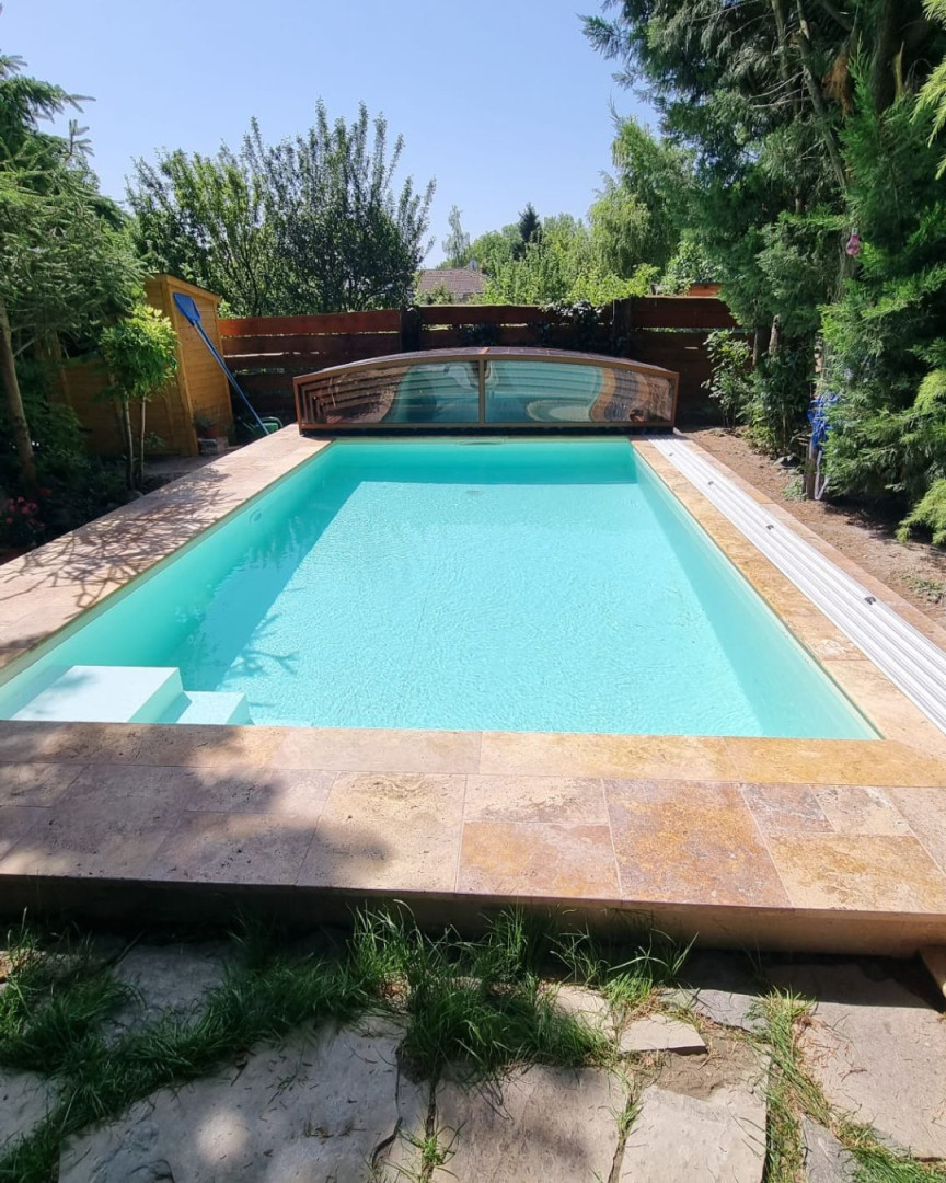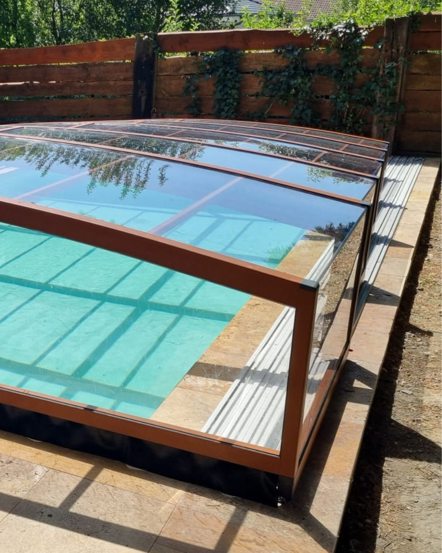 L'abri de piscine PREMIER allie fonctionnalité et design épuré. Avec ses sections de 1 m de large, il offre une esthétique élégante et une manipulation extrêmement confortable.