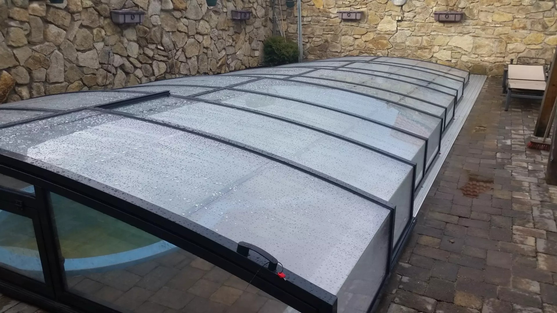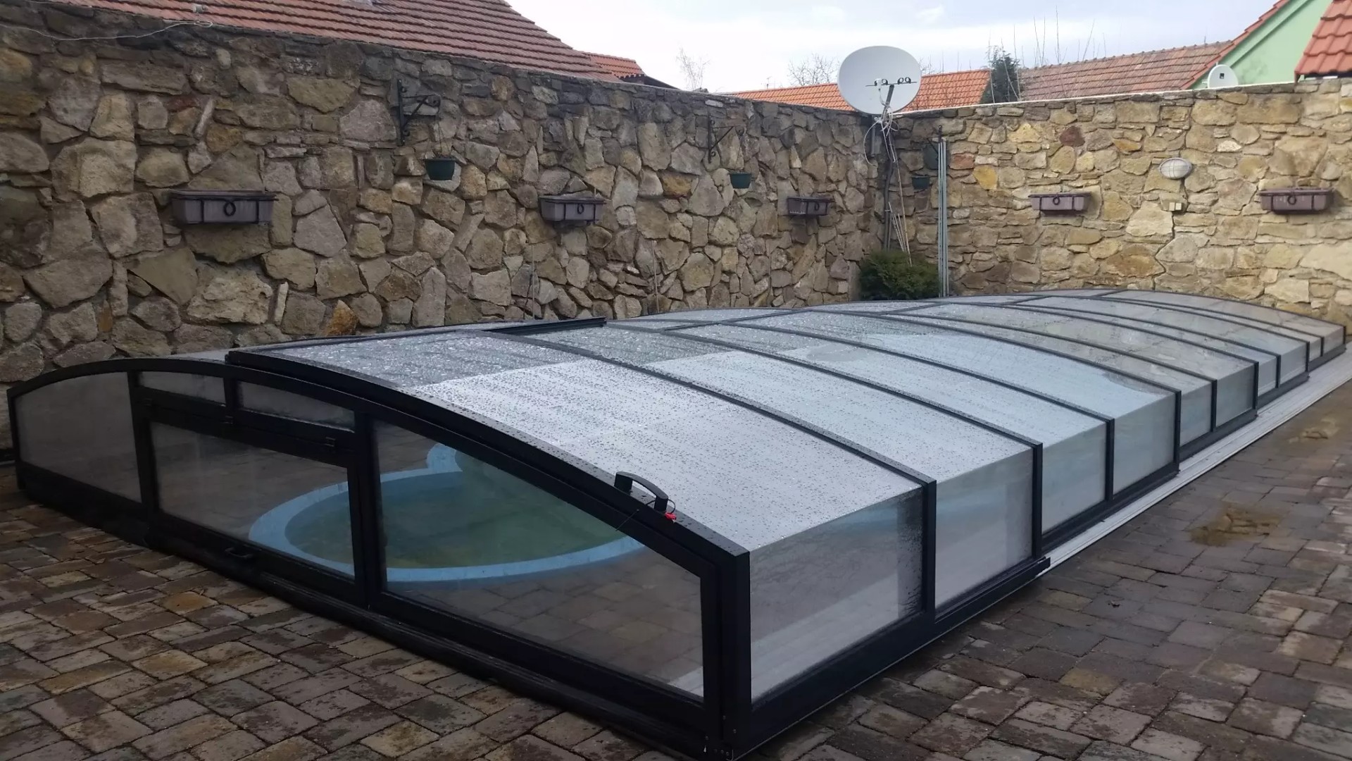 Lors de cette réalisation, nous avons conçu une solution pour une piscine disposant de très peu d'espace périphérique. Nous avons proposé l'abri STAR, une solution extrêmement pratique et compacte. Ainsi, même la proximité immédiate d'une clôture ne gène en rien l'installation ou l'utilisation quotidienne.