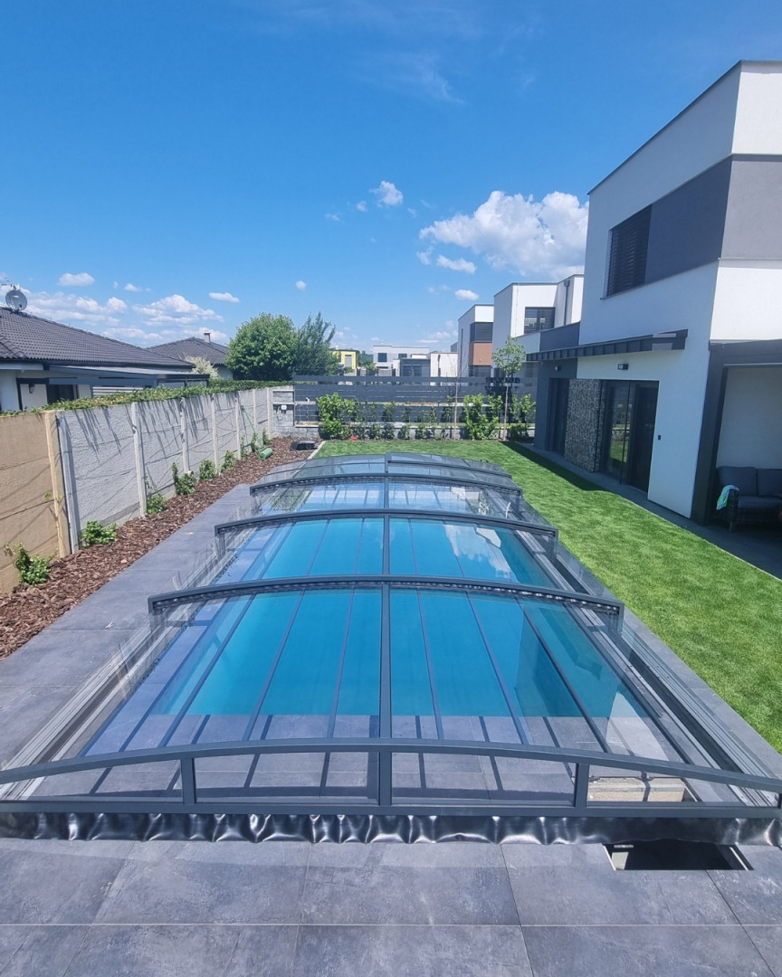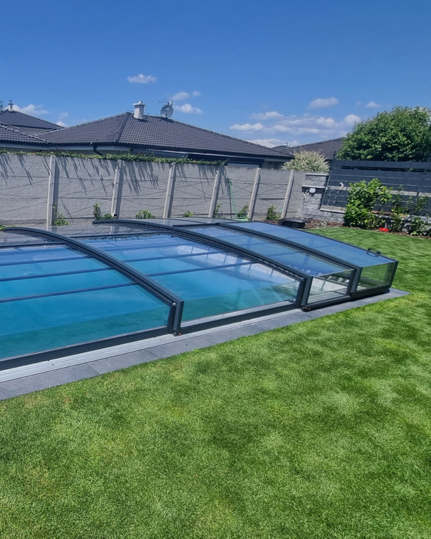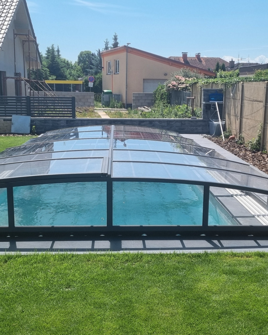 Le modèle STAR est idéal pour ceux qui souhaitent non seulement protéger leur piscine, mais aussi l'utiliser confortablement. Grâce à sa forme voûtée, il offre suffisamment d'espace de mouvement, même lorsque l'abri est fermé.