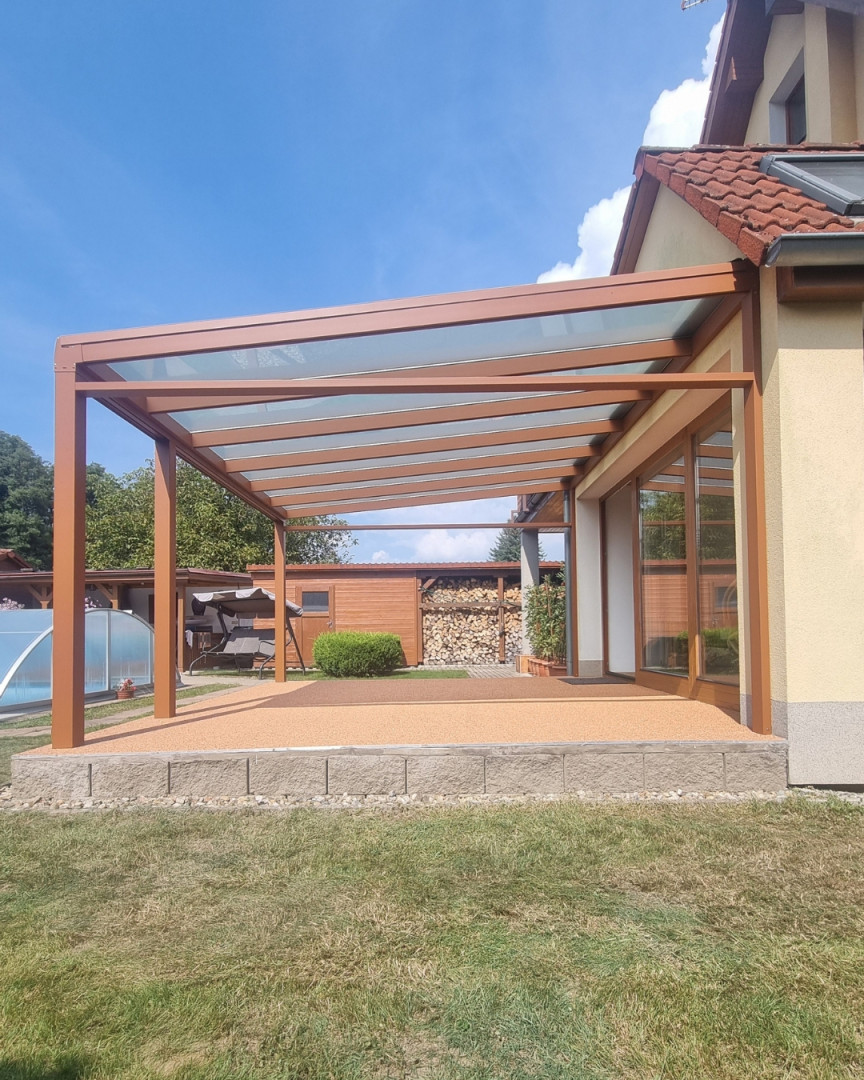 Dans la commune tchèque de Doksy, nous venons de terminer l'installation d'une pergola ROBUST – une structure massive et fiable qui transforme la terrasse en un véritable espace de vie.