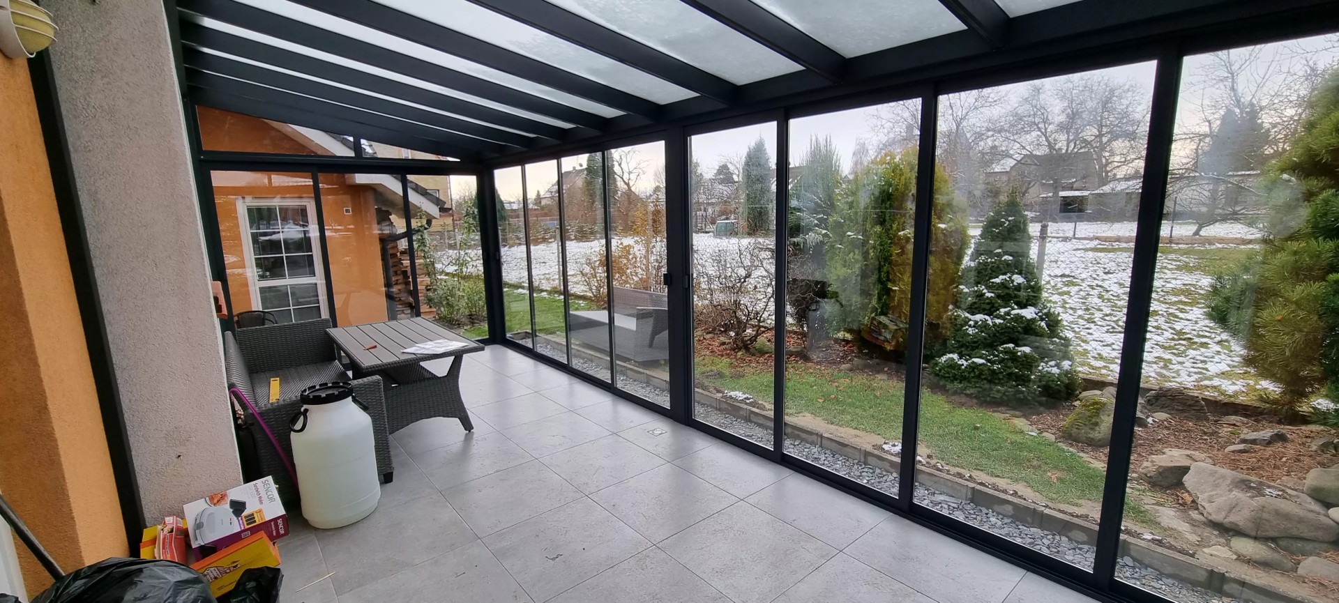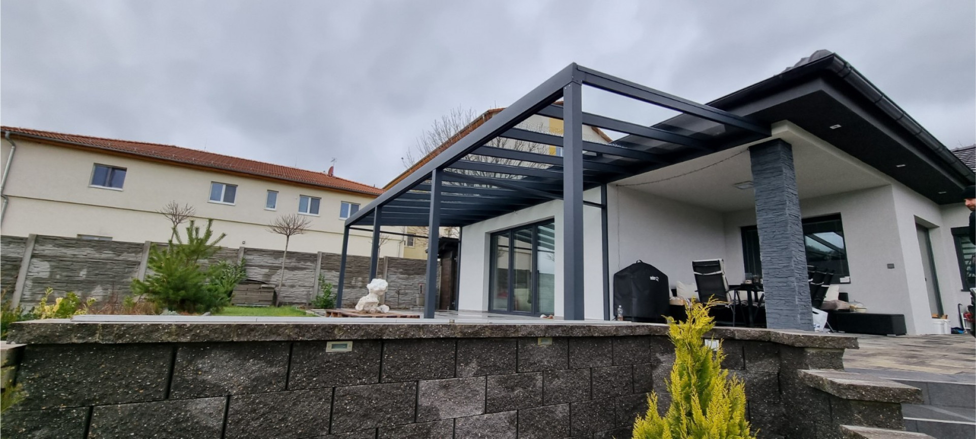 Pour notre client de Klášterec, nous avons mis l'accent sur le design moderne et intemporel qu'offre la pergola ROBUST. Cette réalisation démontre qu'un coloris noir classique suffit amplement pour obtenir un aspect luxueux et robuste pour votre véranda. La structure permet également de renforcer l'intimité, notamment en cas de voisinage direct avec un bâtiment plus haut. Vous pouvez ainsi profiter d'un moment agréable et paisible entre amis, par tous les temps, dans le confort et le respect de votre vie privée.