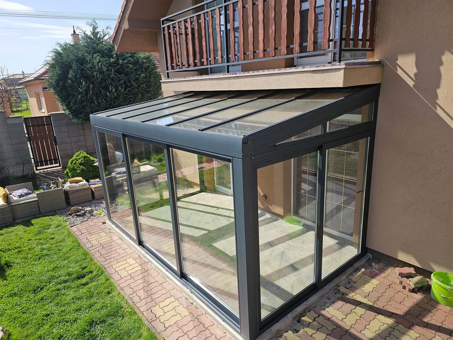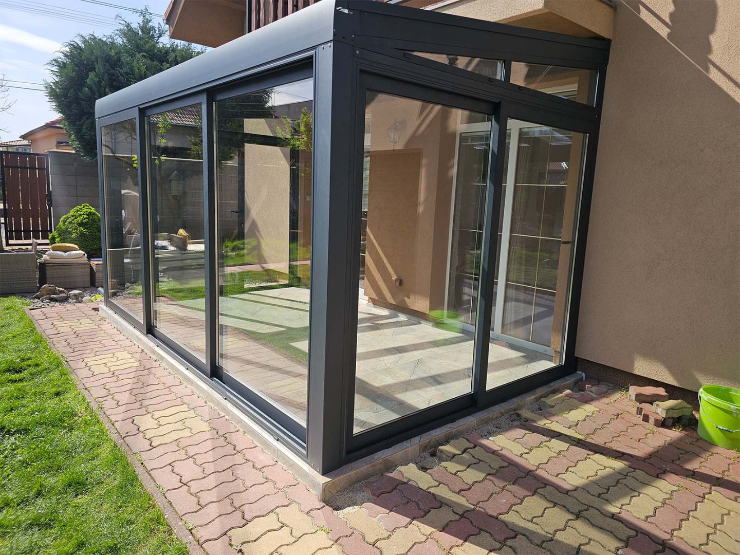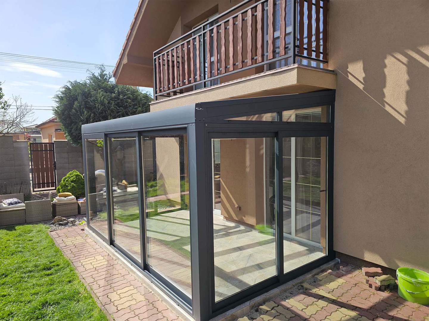 Dans la commune de Chorvátsky Grob, nous avons réalisé une véranda de type Robust, qui agrandit l'espace de vie et relie naturellement l'intérieur à l'extérieur. Elle agit comme une extension de la maison et, grâce à sa structure robuste en aluminium, elle résiste à toutes les saisons. La véranda est entièrement vitrée, ce qui garantit une luminosité naturelle optimale tout en offrant une protection contre les intempéries. Le système en aluminium utilisé apporte stabilité, longévité et une absence totale d'entretien à l'ensemble de l'extension.