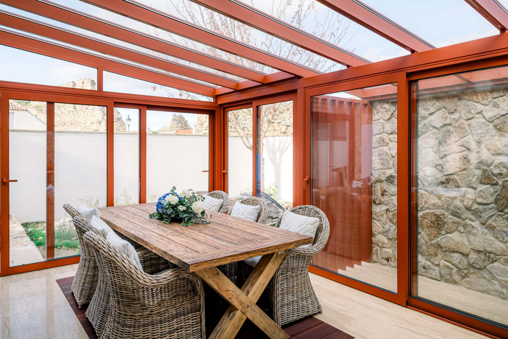 Pour nos clients de Skalica, nous avons réalisé la fabrication et l'installation d'une véranda atypique, conçue pour s'intégrer harmonieusement entre le terrain et l'extension du jardin. Nous avons créé une transition élégante reliant ces deux structures. Cet espace est ainsi devenu le lieu privilégié des clients pour les rencontres entre amis, les déjeuners en famille et le partage de moments précieux.