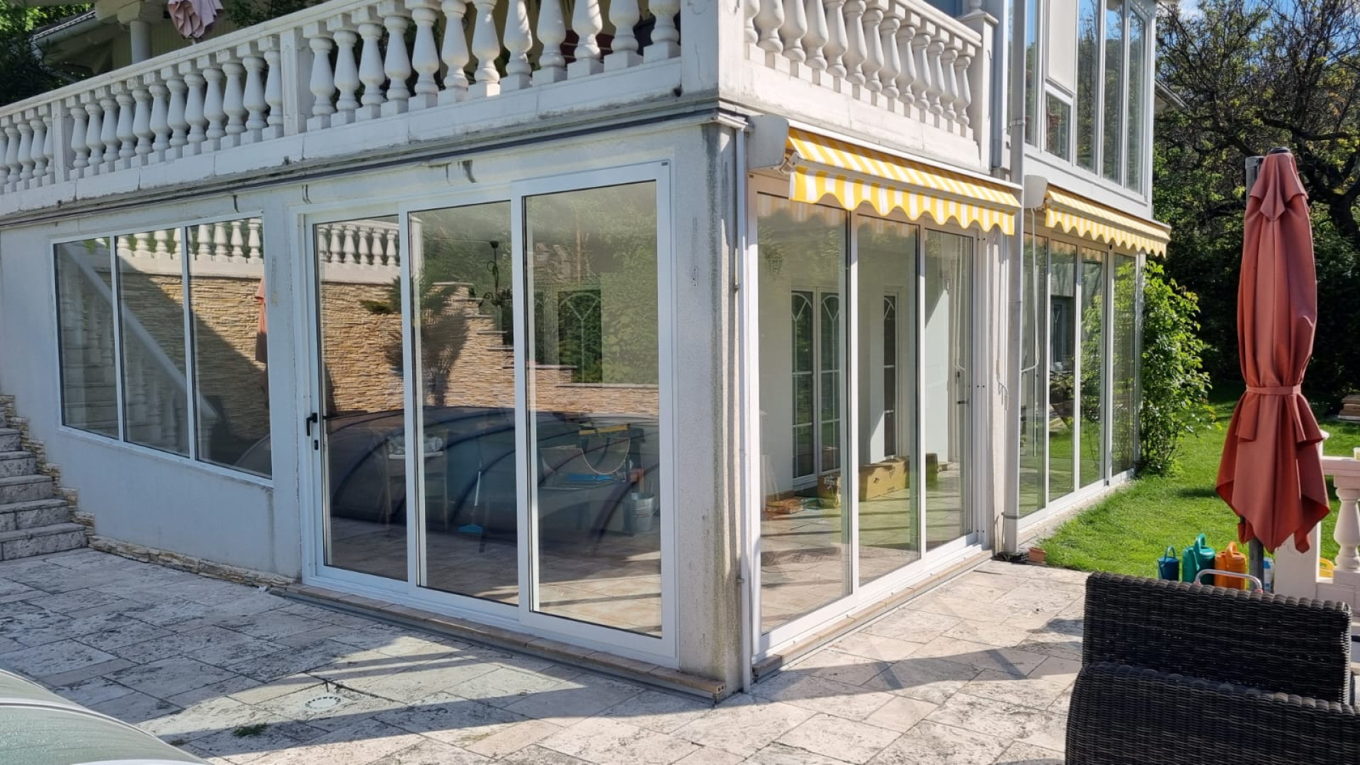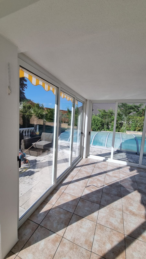 💪 Grâce à nos profilés en aluminium robustes et à notre propre atelier de laquage, ce vitrage est non seulement fonctionnel, mais aussi parfaitement soigné dans les moindres détails.
