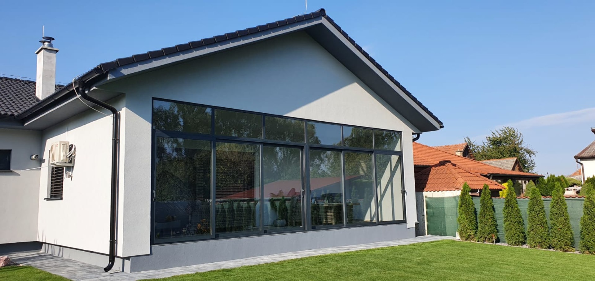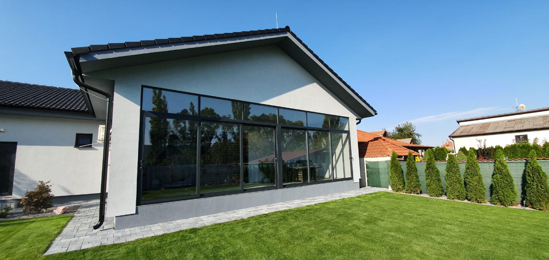 Pour ce vitrage, le client avait une vision claire : il souhaitait de grandes surfaces vitrées pour agrandir visuellement l'espace intérieur, un système ouvrant et une sécurité renforcée contre les intrusions. Il a donc opté pour un verre de sécurité feuilleté, offrant une haute résistance aux chocs et à la pression, ce qui en fait le choix idéal pour les vitrages menant directement à l'intérieur de votre maison.